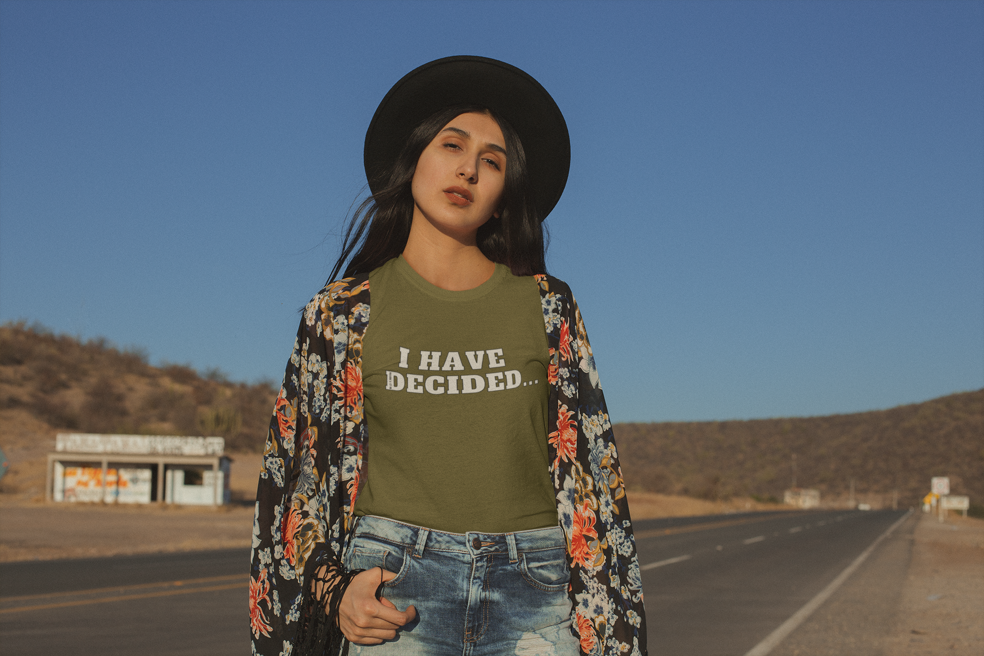Add this conversational piece to your wardrobe with this empowering message of Faith I HAVE DECIDED to follow Jesus Mark 1:17-18 that will make the perfect gift for you or a loved one on any occasion. This t-shirt is everything you've dreamed of and more. It feels soft and lightweight, with the right amount of stretch. It's comfortable and flattering for both men and women.